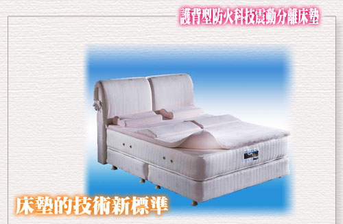 | 『夢富柔』護背型科技震動分離彈簧床,突破傳統設計結構,引領21世紀,健康新關念,多一層科技吸震記憶棉護背層,以提供無劣質填充物的高品質健康床墊。 |