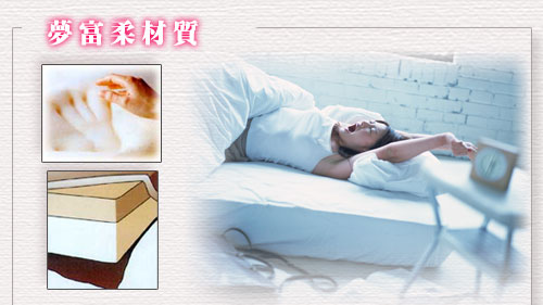 採用最新材質製造之高科技產品, 獨具有防震、低回彈性、透氣性、及100%自動浮昇的功能。 它是一種開放性的纖維細胞質料,可在5-10分鐘內反應您身體的溫度,且緩慢的記憶下您的曲線,而達到平均支撐您全身每個部位,完全免除您身上壓力點形成的痛苦。 這種 P.T.M.S.材質,除具防震性、低回彈性、 透氣性及百分之百自動符昇之功能外,更可抗菌及除臭,可長時間抑制生物滋長。 也能經由人體體重及溫度的感應,給予身體完整的支撐。